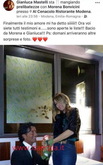 Ma a distanza di poco tempo, la loro storia è terminata e l’uomo ha completamente voltato pagina: poche ore fa, infatti, l’ex cavaliere su Facebook ha annunciato ai suoi amici le nozze con la compagna Morena Bonvicini: