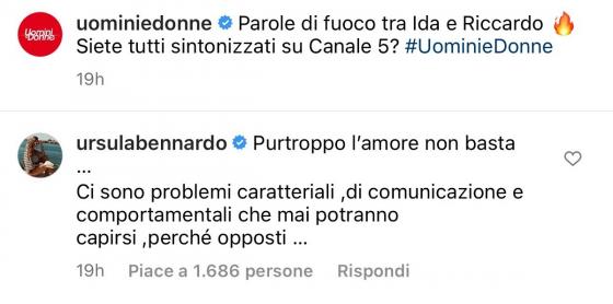 Nel corso dei mesi nelle varie pagine del dating show di Maria De Filippi molti fan sono intervenuti in merito alle loro appassionanti diatribe. Di recente però hanno destato stupore gli interventi di un volto noto del programma: Urusla Bennardo. L’ex dama, che proprio all’interno di Uomini e Donne ha conosciuto il papà della sua ultimogenita, Sossio Aruta, ha voluto dire la sua in uno dei post su Ida e Riccardo, scatenando una serie di reazioni da parte dei popolo social.