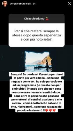 Veronica ha infine dichiarato di non voler assolutamente cambiare dopo questa esperienza nel dating show di Canale 5, promettendo ai suoi followers di rimanere sempre se stessa: