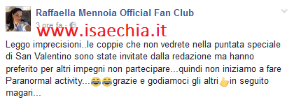 Intanto sono già sorte le polemiche dei fan riguardo ad alcune ipotetiche preferenze della redazione e all’assenza di alcune coppie, alle quali la stessa Mennoia aveva risposto su Facebook: