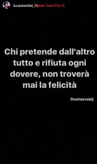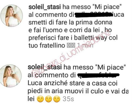 E nonostante la smentita e le dediche dell’ex tronista verso la bionda italo-americana, in molti sospettano ci sia un po’ di nervosismo. E ad avvalorare questa ipotesi ci sono alcuni movimenti social che fanno mormorare: il fratello di Luca, Gianmarco non segue più la Sorge, e anche la madre di quest’ultima non ha più il “segui” al profilo dell’emiliano.