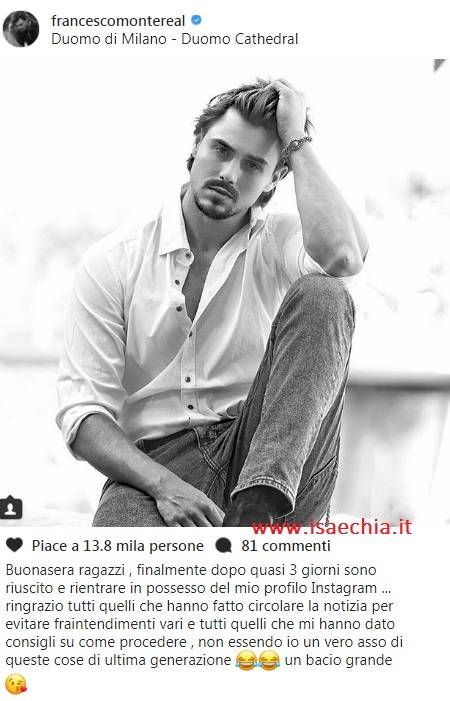 AGGIORNAMENTO – Francesco ha fatto sapere di essere tornato in possesso del suo profilo Instagram: