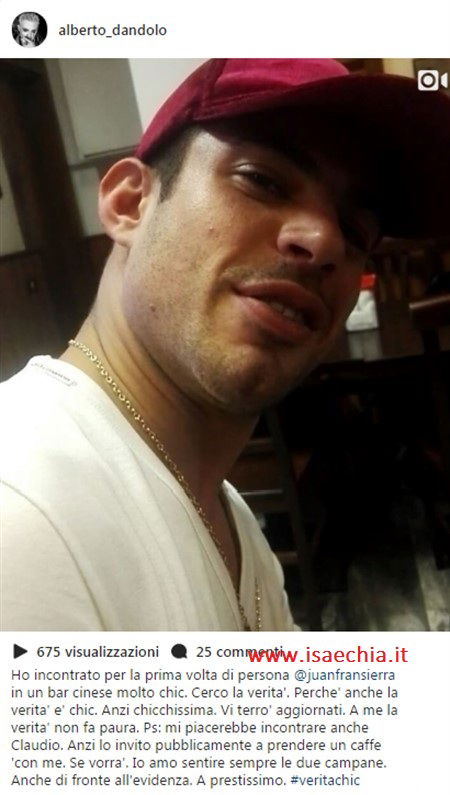 AGGIORNAMENTO – Il giornalista Alberto Dandolo, molto coinvolto nella storia, in quanto già mesi fa aveva rivelato la relazione ancora in corso tra Claudio e Juan, pochi istanti fa ha pubblicato un video nel quale si mostra in compagnia del modello: