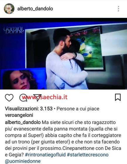 Infine, il giornalista Alberto Dandolo ha postato una clip di un’esterna criticando senza mezzi termini il Riccardi: “Ma questo ragazzotto che se la tira neanche fosse Paul Newman è un corteggiatore etero? Siete sicuri? E poi, in un commento sotto al video postato, continua: “La virilità e l’ormone non li avevo manco lontanamente considerati perché inesistenti perlomeno in sta clip! Una spasmodica, noiosa e destrutturata esaltazione di un ego che latita… quantomeno ai miei occhi vergini di sto trono”. Cliccando sull’immagine a seguire potrete ascoltare le sue parole: