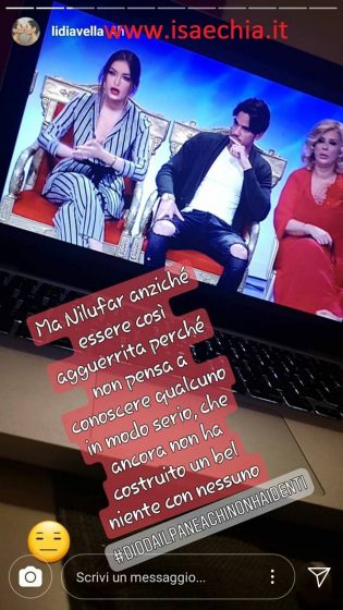 Lorenzo, intanto, tramite social ha inviato un messaggio alla Affi Fella scrivendo la parola ‘occhi’ e allegando un cuoricino. Un chiaro riferimento alla loro esterna, durante la quale lui le ha detto di non essere preoccupato quando la vede uscire con gli altri perché, secondo lui, il suo sguardo in studio racconta tanto, ossia il suo palese interesse; Francesco Isidori Pacelli, invece, ha scritto un commento in merito alla sua abitudine di utilizzare del correttore per apparire con un aspetto migliore davanti alle telecamere, cosa che non è stata affatto apprezzata dalla tronista italo-persiana che l’ha accusato di pensare solo alle apparenze: