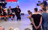 Oggi, comunque, nel trono della Dallari è successo qualcosa di decisamente rilevante, e no, non mi riferisco né al bacio con puffo iracondo Mariano (nonostante la faccia imbambolata della tronista nel quadratino in basso, e quella euforica di lui che si dichiarava ‘stupito da questa ragazza‘ solo per due bigliettini che gli ha scritto, manco farina del suo sacco..) né a quello con Andrea (che nonostante non si sia praticamente visto è comunque stato meglio del precedente..), bensì ad una frase che Valentina ha ripetuto ben due volte a Gianluca Tornese, sia in studio sia mentre litigavano sulle scale dei camerini.. ‘Sei quello che mi piace di più esteticamente, se tiri fuori il carattere mi porti a casa‘.. mica balle, eh. Gli ha detto chiaramente che se si da una mossa lo sceglie. E voi avete visto qualcuno scomporsi, su quelle seggioline rosse? Nessuno ha battuto ciglio, nessuno s’è scomposto. Evidentemente se non se la preparano a casa, l’arringa, manco sanno cosa rispondere, peccato che uno REALMENTE interessato alla tronista all’udire una frase del genere altro che i versi onomatopeici che ci regala il Catanzaro (tra una risata e l’altra, eh.. perché è così adirato per il bacio col rivale che ha persino trovato il tempo di ridacchiare compiaciuto, il cucciolone!) avrebbe dovuto fare.