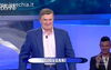 Si presenta vestito solo di un accappatoietto striminzito bianco ospedale dal quale spuntano due gambette rachitiche dello stesso colore dell’accappatoio, un petto ristretto e liscio come il culetto di un bebè e tutte le luci dello studio a riflettersi sulla pelata. L’effetto complessivo era quello di un calippo alla menta. Però di quelli che hai dimenticato nel freezer da 20 anni. Agghiacciante.