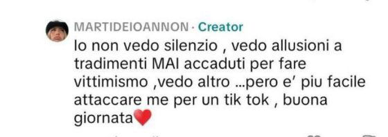 Io non vedo silenzio, vedo allusioni a tradimenti mai accaduti per fare vittimismo. Vedo altro, però è più facile attaccare me per un TikTok.