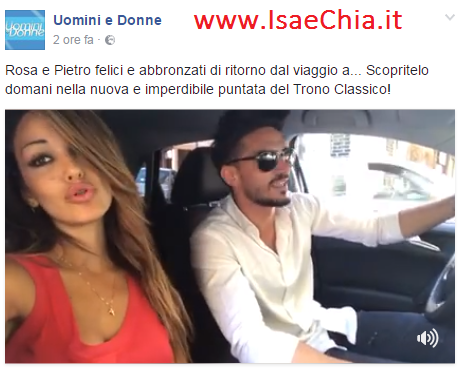 E sempre su Instagram nell’annunciare il viaggio, il bel Pietro si è lasciato andare ad una romanticissima ed inaspettata dedica per la sua Rosa: “Volevo dire una cosa a Rosa, una cosa molto semplice…Volevo dirti che la cosa più bella che mi sia mai capitata!” (il video in apertura di post).