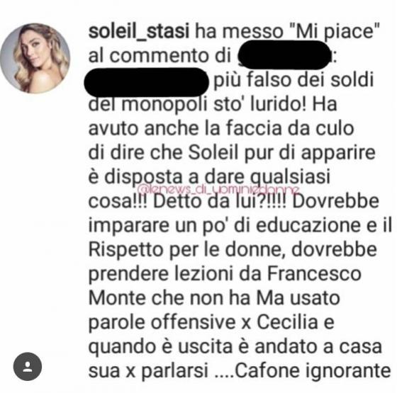 ‘Uomini e Donne’, Soleil Sorge e quel like a un durissimo commento contro Luca Onestini…
