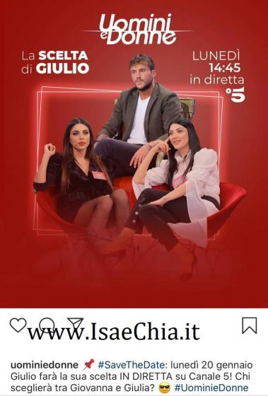 Giovanna Abate e Giulia D’Urso sono le due pretendenti rimaste alla sua corte in questa avventura turbolenta e ricca di alti e bassi. Una scelta rimandata di volta in volta, ma ora sembra essere arrivato il momento giusto. Quando sarà registrata? E’ stato il profilo Instagram del dating show di Maria De Filippi a svelarlo pochissimi attimi fa e ad annunciare che, in realtà, la puntata in questione andrà in onda in diretta lunedì 20 gennaio, nell’appuntamento pomeridiano delle 14.45: