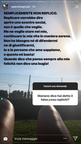 Nelle scorse ore, rispondendo ad un utente su Instagram, Valentina è tornata a parlare dell’ex tronista: