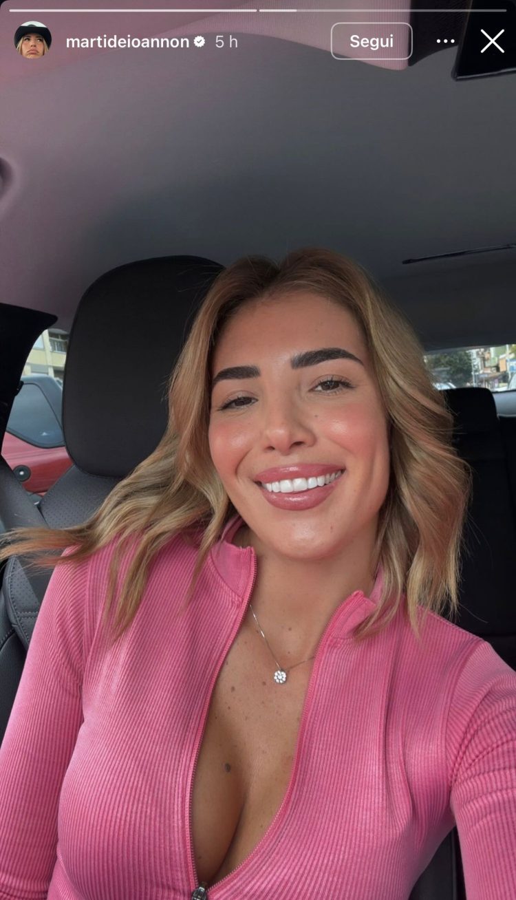 In una IG stories che la vede alla guida della sua macchina, la bionda ex tronista romana indossa la collana che Gianmarco le ha regalato nella loro ultima esterna sulla neve.