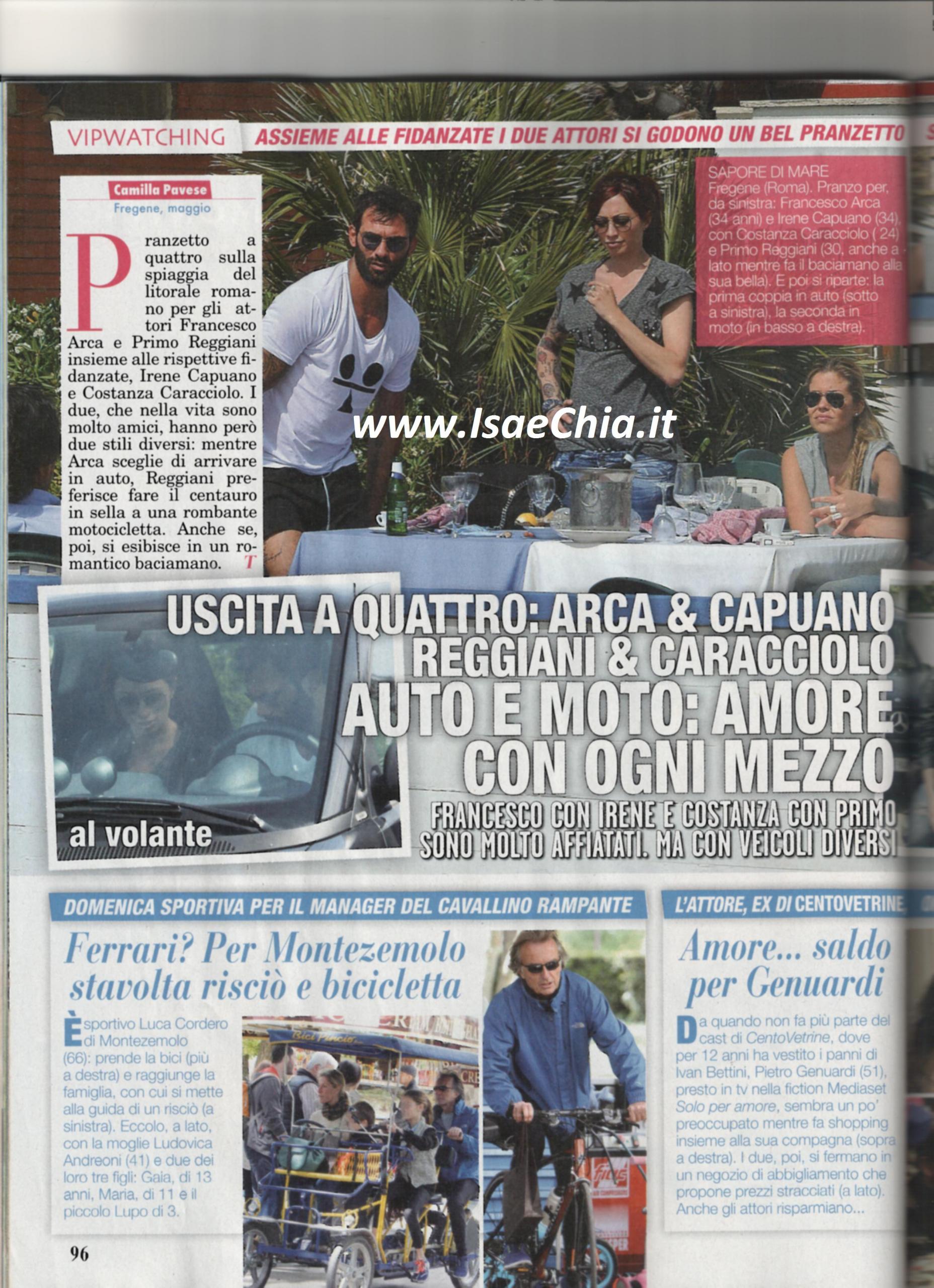 E’ già da un po’ che si parla di un ritorno di fiamma tra Francesco Arca e Irene Capuano, e finalmente abbiamo delle foto dei due insieme. Eccoli, infatti, a Fregene, in compagnia di un’altra coppia dello showbiz, l’ex Velina Costanza Caracciolo e l’attore Primo Reggiani: le due ragazze, infatti, nonostante gli stili molto diverse, sono molto amiche. Anche i due attori hanno stili diversi: l’ex tronista arriva in auto, l’altro sulla rombante motocicletta. Il gruppetto di amici pranza insieme. Primo fa il baciamano alla sua amata, poi…. si riparte per tornare ognuno ai propri impegni.