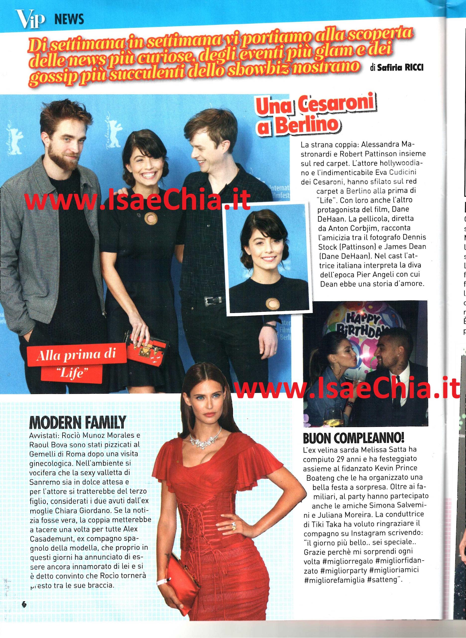 Incontri che non avvengono tutti i giorni anche per l’attrice Alessandra Mastronardi: l’ex protagonista de I Cesaroni, infatti, ha sfilato al fianco di Robert Pattinson, l’attore di Hollywood diventato noto soprattutto per essere il protagonista della saga Twilight. I due erano insieme per la prima del film Life, a Berlino, dove Robert interpreta il fotografo Dennis Stock, amico di James Dean, mentre Alessandra è la diva con cui Dean ebbe una storia d’amore.