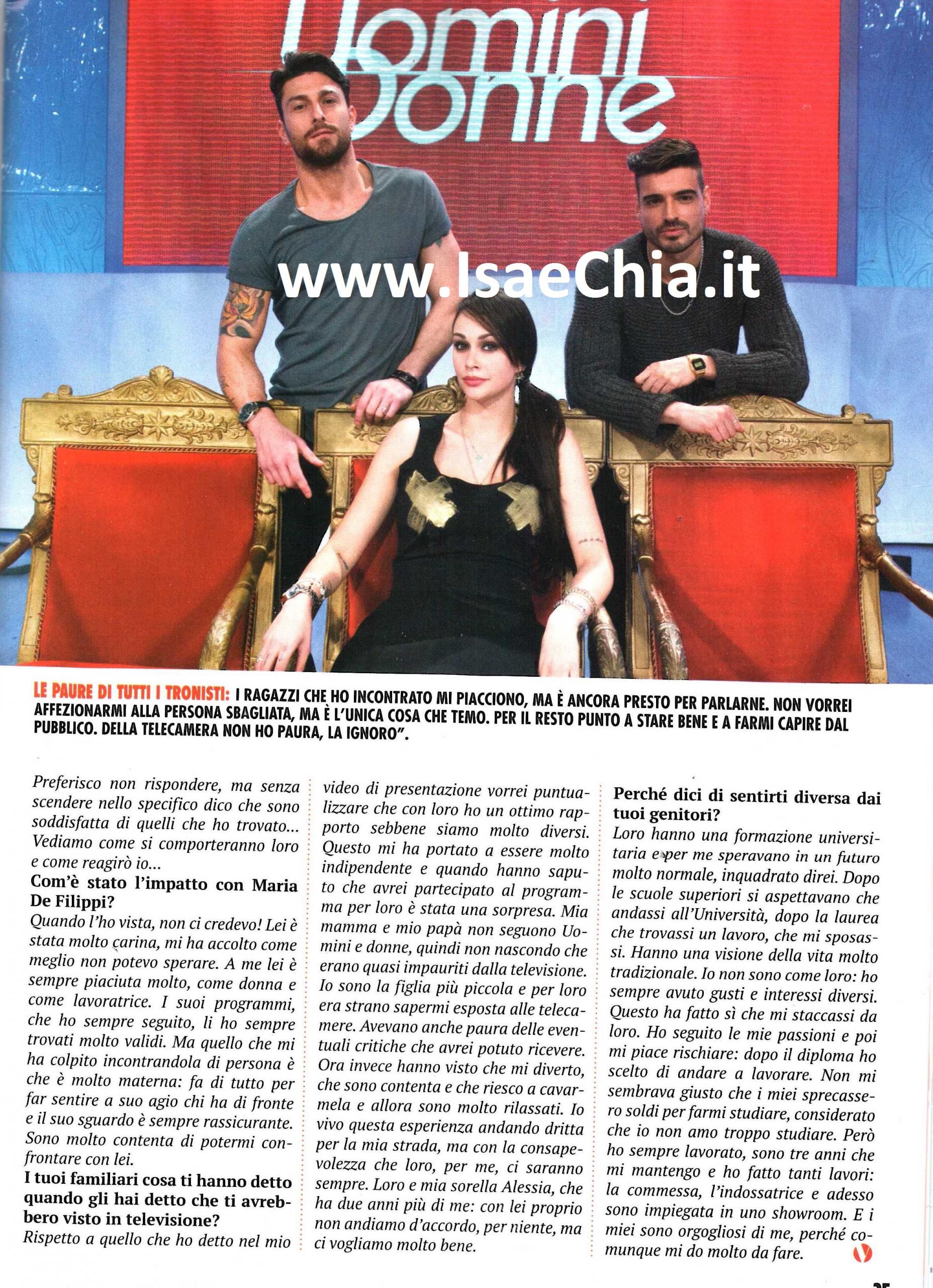 Ventun anni appena compiuti, Valentina Dallari è la nuova tronista di Uomini e Donne, che ha preso il posto di Teresa Cilia…Per puro caso: “Ho sempre seguito il programma, in particolare la prima parte di questa stagione: il trono di Andrea Cerioli e Jonás Berami mi ha appassionata molto. Un giorno, parlando con i miei migliori amici, uno di loro mi ha chiesto perché non avessi chiamato per propormi come corteggiatrice di Andrea: lui mi piaceva ed è bolognese come me! Io non ho scritto, ma ho iniziato a pensarci. Nel frattempo, il mio amico Alessandro l’ha fatto al posto mio; se non l’avesse fatto lui, io sarei stata ancora a pensare! E, a questo punto, visto com’è andato il provino, dico ‘per fortuna’! Già la prima volta mi hanno fatto tante domande e quando sono andata a Roma la prima volta, ho incontrato lei, Maria De Filippi. Mi ha detto che erano interessati a propormi il trono e io, pur essendo contentissima, non sapevo cosa dire. Sono rimasta impietrita: non pensavo che da una semplice e-mail, tra l’altro non mandata da me, si potesse diventare tronista. Partecipare ad un programma rappresenta un bel cambiamento nella propria vita: non è facile ritrovarsi da un momento all’altro in un programma televisivo. Maria è stata molto carina, mi ha accolto come meglio potessi sperare. Ho sempre seguito i suoi programmi, li ho sempre trovati validi. Mi ha colpito il suo essere materna: fa di tutto per farti sentire a tuo agio, ha uno sguardo sempre rassicurante“. Quando le si chiede da quanto tempo non è fidanzata o innamorata, la neo-tronista risponde: “Dallo scorso febbraio: è passato giusto un anno da quando è finita la mia storia più importante, durata due anni. Da quel momento non ho incontrato nessuno per cui valesse la pena mettersi in gioco. E poi nei primi mesi dopo la fine di quella storia sono stata male: sono stata lasciata. Tra noi le cose non andavano bene e dovevamo prendere la decisione di allontanarci. Lui l’ha presa per primo. Questo distacco mi ha portata a concentrarmi su me stessa e ora mi sento più matura: in pochi mesi sono cresciuta tantissimo. Ora sono single e questa è una bellissima occasione per mettermi in gioco e conoscere qualcuno che rispecchi i miei interessi. Affronto tutto in modo molto sereno, ma, come tutti i tronisti, temo di affezionarmi a qualcuno che partecipa solo per avere notorietà. Per il resto punto a stare bene e a farmi capire dal pubblico: non vorrei che le mie scelte fossero fraintese. Delle telecamere non ho paura: in esterna le ignoro. I corteggiatori? Senza scendere nello specifico posso dire che sono soddisfatta di quelli che ho trovato!“. Infine, Valentina tiene a precisare alcune cose circa il suo rapporto con i suoi genitori: “Rispetto a quello che ho detto nel mio video di presentazione, vorrei puntualizzare che con loro ho un ottimo rapporto, seppur siamo molto diversi. Questo mi ha portato ad essere indipendente e quando ho detto loro che avrei partecipato al programma, per loro era una sorpresa ed erano impauriti: io sono la figlia minore ed era strano sapermi esposta alle telecamere, avevano paure delle critiche che avrei potuto ricevere. Ora invece hanno visto che sono contenta e che me la cavo e si sono rilassati. So che loro e mia sorella Alessia ci saranno sempre: con lei non vado d’accordo, per niente, ma ci vogliamo molto bene. Sono diversa dai miei perché loro hanno una formazione universitaria e speravano per me un futuro diverso, “inquadrato”, che mi iscrivessi all’Università, che trovassi un lavoro e mi sposassi. Io non sono come loro, ho seguito le mie passioni e ho rischiato e dopo il diploma ho scelto di andare a lavorare. Non mi sembrava giusto che spendessero soldi per farmi studiare, dato che non amo troppo farlo. Sono tra anni che mi mantengo da sola: ho fatto la commessa, l’indossatrice e ora sono impiegata in uno showroom e loro sono orgogliosi di me perché mi do molto da fare“.