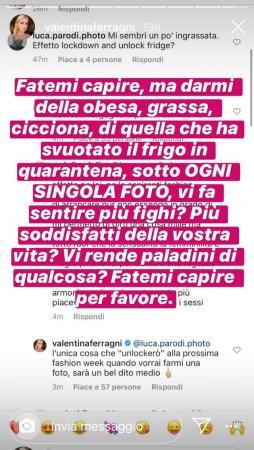In più occasioni, infatti, la sorella della ben più nota influencer Chiara Ferragni è stata raggiunta da commenti terribili e poco edificanti (per usare un eufemismo) riguardanti il suo aspetto fisico, e in particolar modo è stata spesso tacciata di avere qualche kilo di troppo. Anche sotto le foto più recenti condivise sui social, le critiche e i giudizi più duri sul fisico della bellissima Valentina in realtà si sprecano, dato che alcuni dei suoi followers sembrano davvero pronti a dirgliene di tutti i colori.