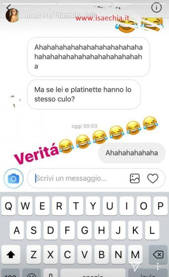 Qualche giorno fa ci avevano segnalato che la neo coppia aveva smesso di seguirsi, per poi tornare a rimettere il follow e postare foto di coppia. Intanto, continuano le frecciatine tra Valentina e Francesca: tutto ha avuto inizio da questo commento lasciato dalla giocatrice sotto una pagina Ig e la successiva Ig Story…