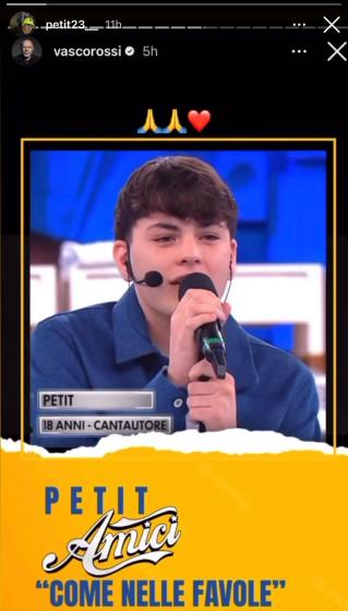 Una bella gratificazione per l’allievo di Amici! Poco dopo Petit ha repostato la storia di Vasco aggiungendo tre emoticon come didascalia.