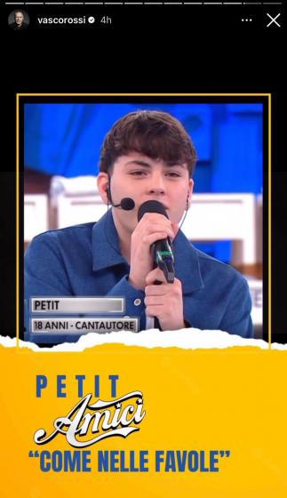 Vasco Rossi condivide sui social l’esibizione di Petit: la reazione del cantante di Amici 23