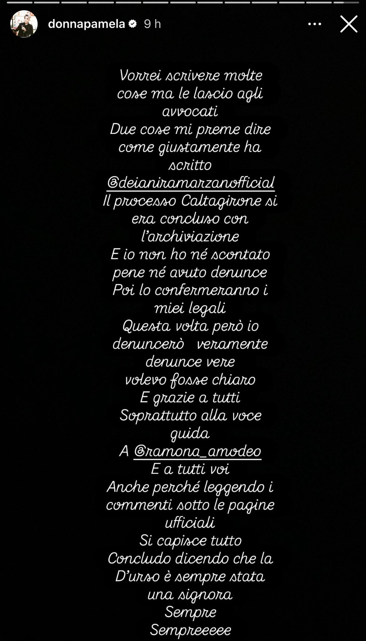 Provo dolore per me stessa per il raggiro mediatico di cui sono stata vittima. Non capirò mai la storia di Pamela Prati, lei non la capirò mai, fino a oggi ho aspettato un messaggio, una chiamata o qualcosa. Se tu sei una vittima, ti associ a una vittima e io sono una vittima di questo raggiro. Io non c’entro nulla e lei lo sa. In che rapporti sono con Perricciolo e Prati? Ho zero rapporti con queste due donne. Se le ho viste in tribunale? No, la storia del bambino non riguardava la Prati, mentre la Perricciolo non si è mai presentata in tribunale. Per quanto riguarda la denuncia di Pamela Prati contro di noi, è stata archiviata e il giudice ha anche aggiunto che lei ha usato questa vicenda per scopi promozionali. Io ho denunciato la Perricciolo ed è ancora in atto. Cosa provo per le due Pamela? Pena e basta.