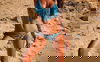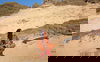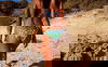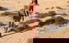 Longboard (una variante allungata dello skateboard) e asse da stiro alla mano, affronta impavida il deserto e le onde del mare, il tutto per promuovere ovviamente il brand TUyYO Formentera, che ha fornito stivali e costumi per l’occasione: