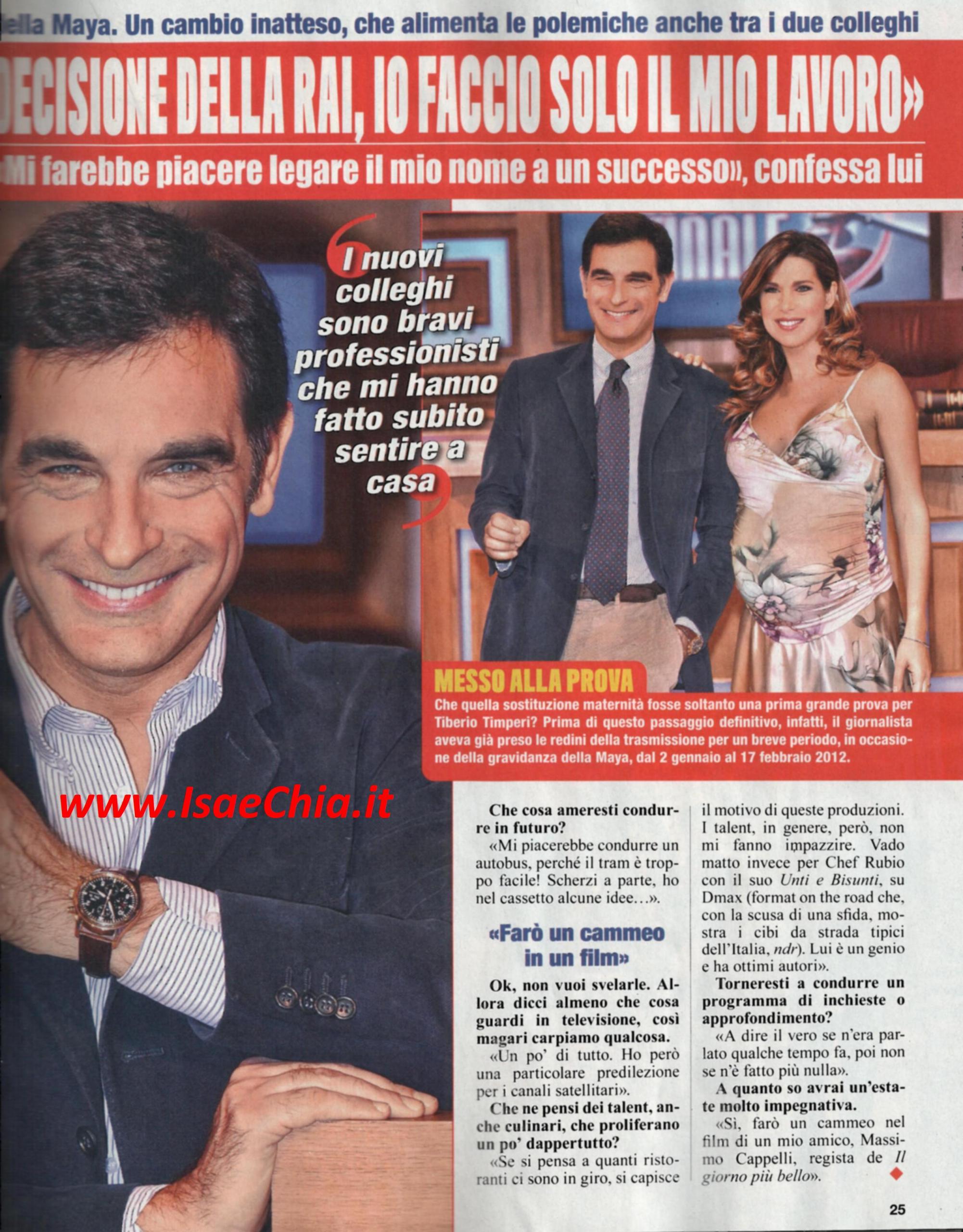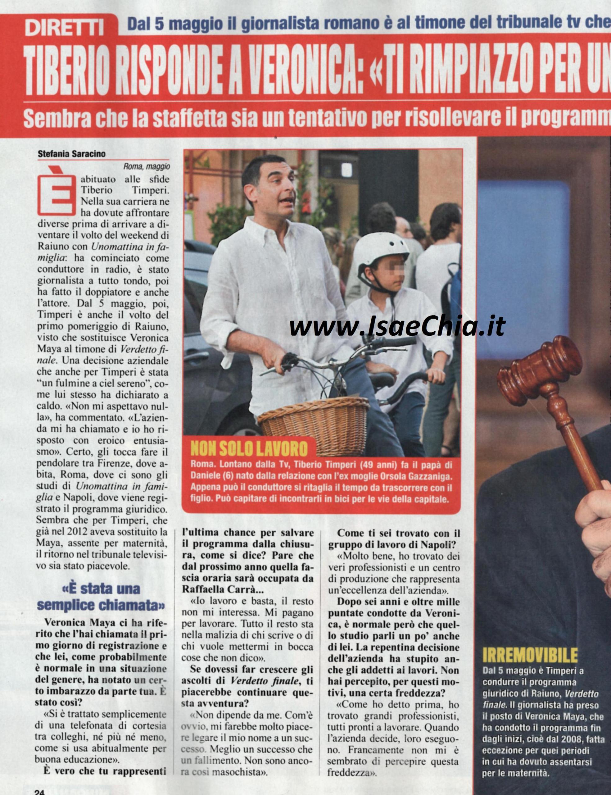 Dal suo canto, il nuovo conduttore Tiberio Timperi, racconta: “Tra me e Veronica c’è stata una telefonata di cortesia, come si usa tra colleghi” e quando gli si chiede se è vero che lui rappresenta l’ultima spiaggia per salvare il programma, risponde: “Io lavoro e basta, il resto non m’interessa. Mi pagano per lavorare. Tutto il resto sta nella malizia di chi scrive o vuole mettermi in bocca cose che non dico. Non ho percepito nessuna freddezza dal gruppo di lavoro degli studi televisivi di Napoli, anzi, erano tutti pronti a lavorare!”