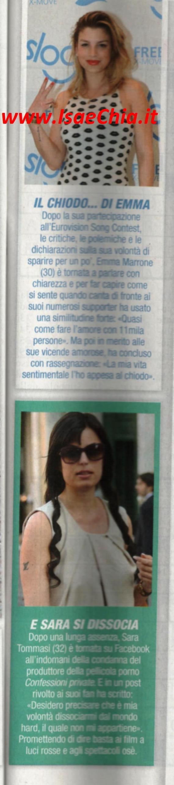 E, a proposito di fare l’amore, l’ex naufraga Sara Tommasi, recentemente balzata agli onori della cronaca per le sue pellicole porno, ha scritto su Facebook all’indomani della condanna del produttore del film Confessioni private: “Vorrei precisare che è mia volontà dissociarmi dal mondo hard, che non mi appartiene”, promettendo di dire basta alle luci rosse…Avrà avuto paura del processo?