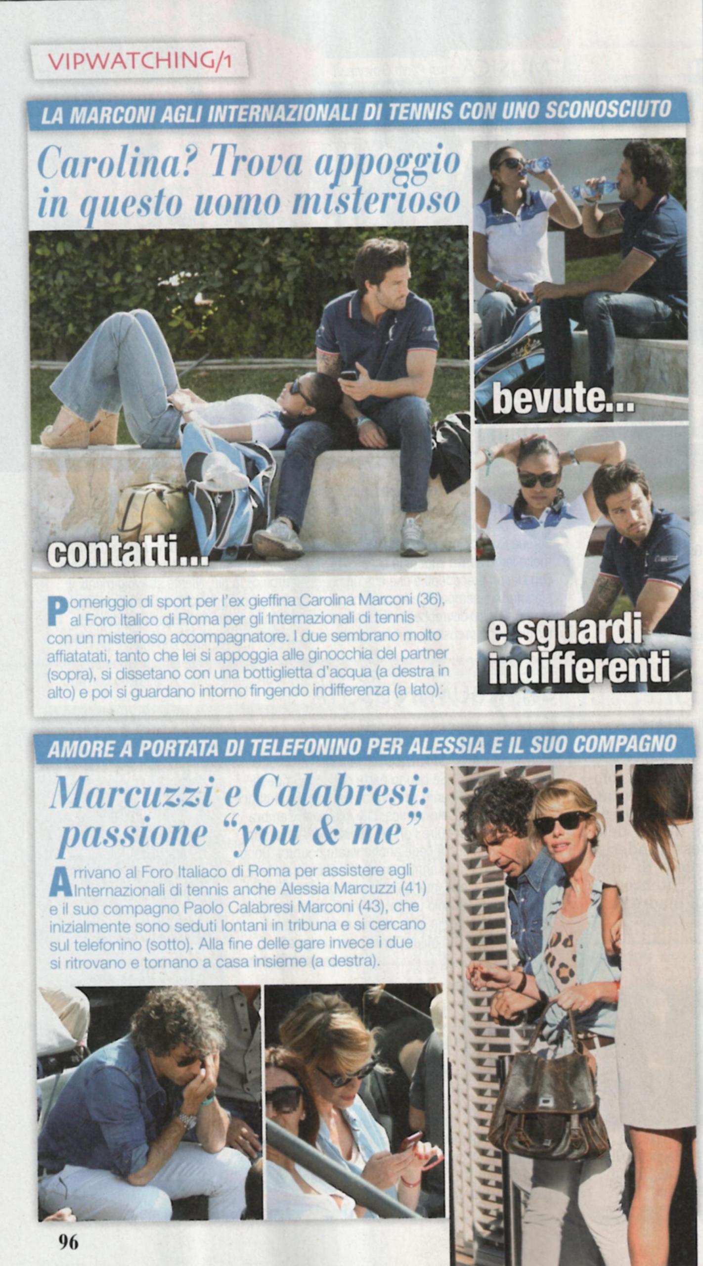 Molto più serena, invece, Carolina Marconi: la splendida gieffina, infatti, è stata beccata agli internazionali di tennis con un nuovo accompagnatore misterioso e si poggia sulle sue gambe. Al Foro Italico c’era anche la conduttrice del Grande fratello, Alessia Marcuzzi, col suo nuovo amore, Paolo Calabresi Marconi, che inizialmente siedono lontani, ma poi si ritrovano e decidono di andar via insieme.