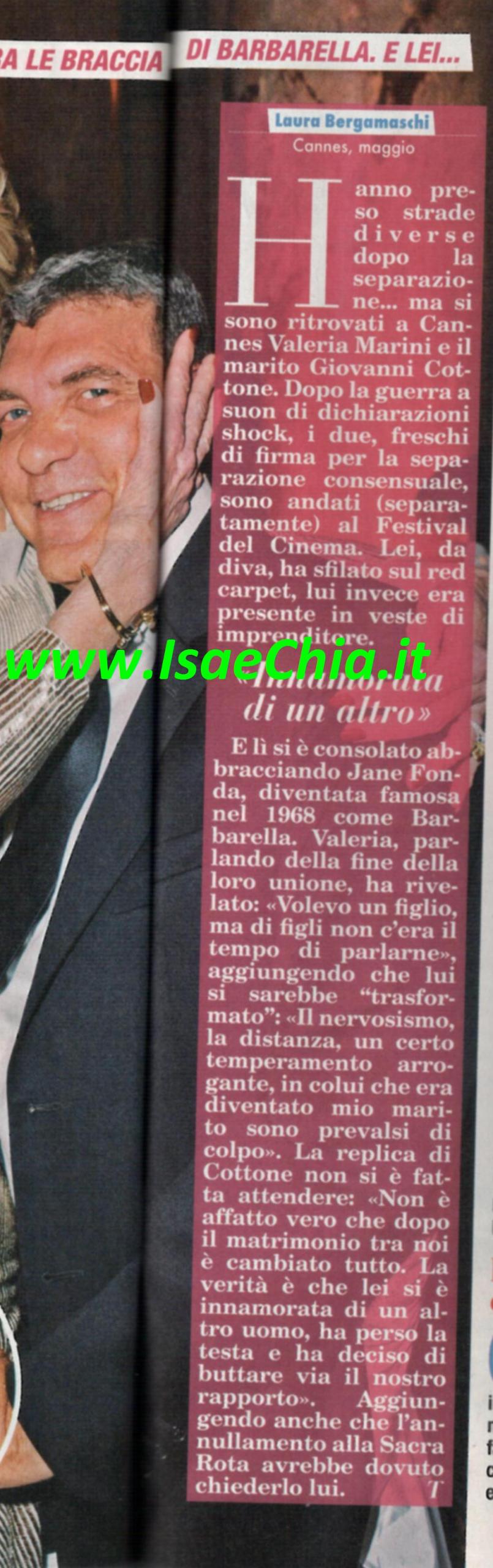 Non nasconde la grande sorpresa Valeria Marini, nel vedere suo marito Giovanni Cottone (dal quale ha chiesto la separazione) consolarsi con la smagliante Jane Fonda, l’attrice 76enne che interpretava Barbarella. L’ex naufraga era sulla passerella del Festival del Cinema di Cannes e sfilava come una diva sulla passerella, mentre l’imprenditore era lì per motivi di lavoro. Tuttavia, i due sono andati ognuno per la propria strada: lei è stata vista con un altro uomo, Antonio Brosio e Cottone ha confermato: “Il nostro matrimonio è finito perché lei si è innamorata di un altro”. Ha girato pagina anche lui o ha provato a farla ingelosire?