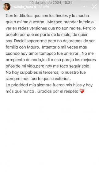 Attraverso una storia pubblicata sul suo profilo Instagram, Wanda Nara ha confermato la rottura con Mauro Icardi.